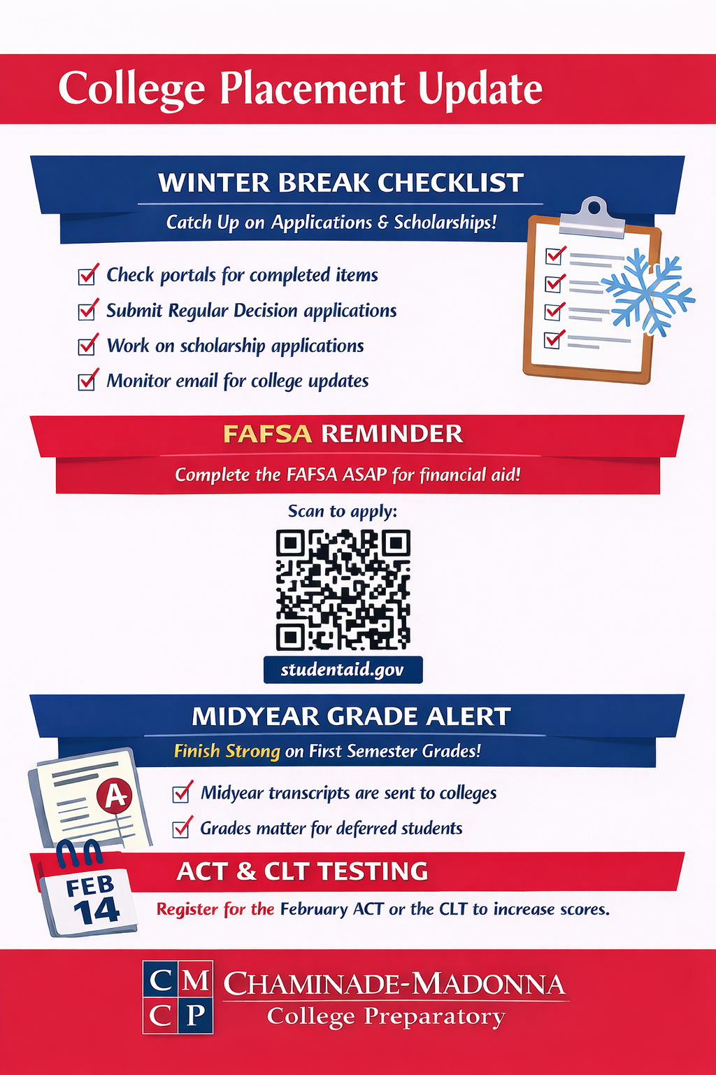 Should you have any questions, please contact Mrs. Galvez at agalvez@cmlions.org as soon as possible.
