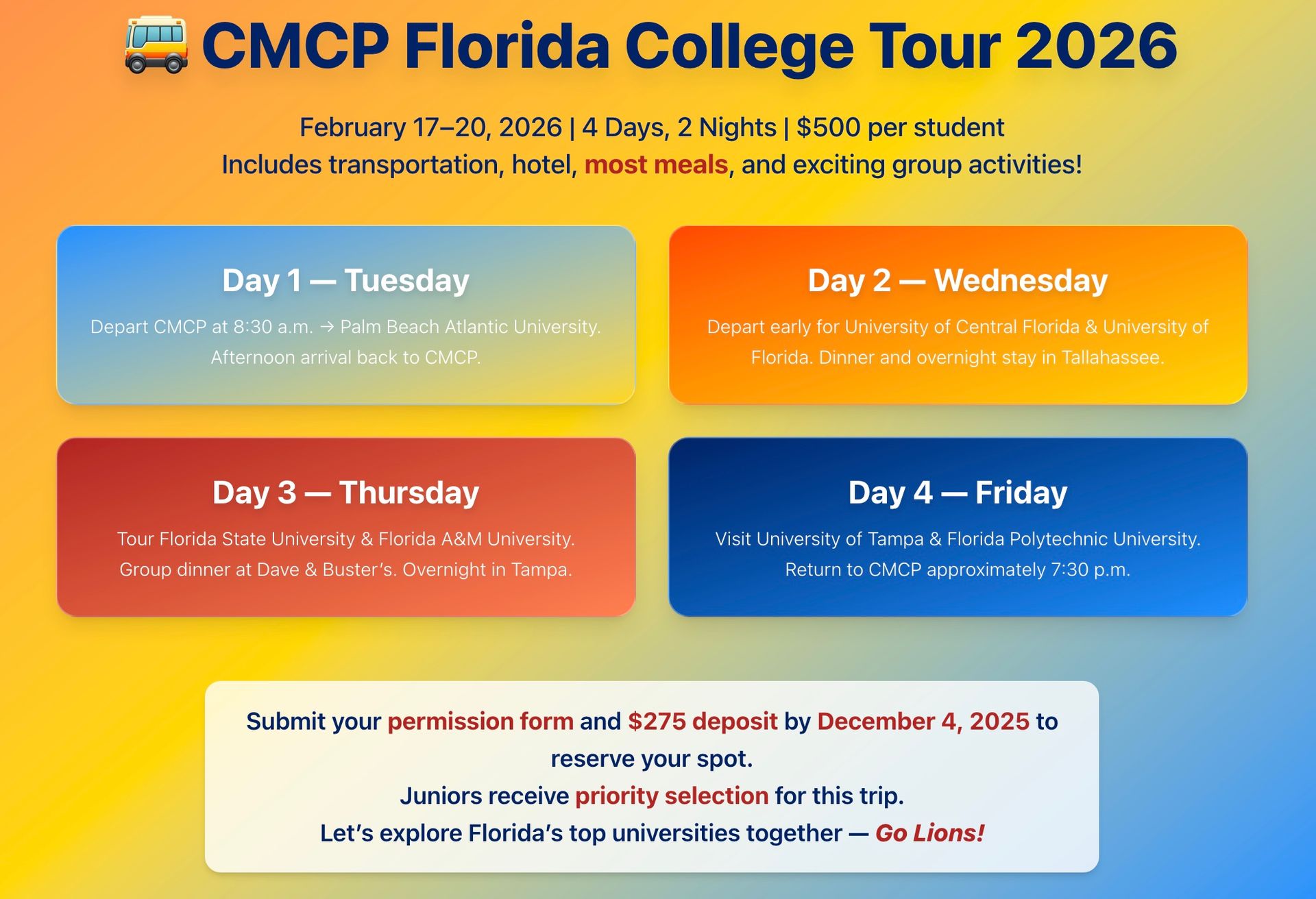 Click here to view the full school calendar.