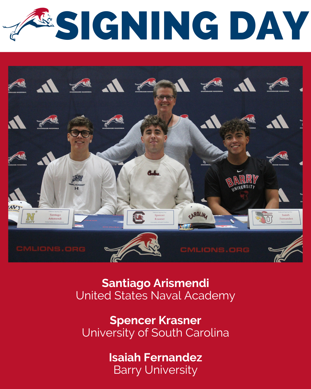 Congratulations to our student-athletes who signed today to play baseball at the collegiate level. Your #LionPride can't wait to see what you accomplish next.