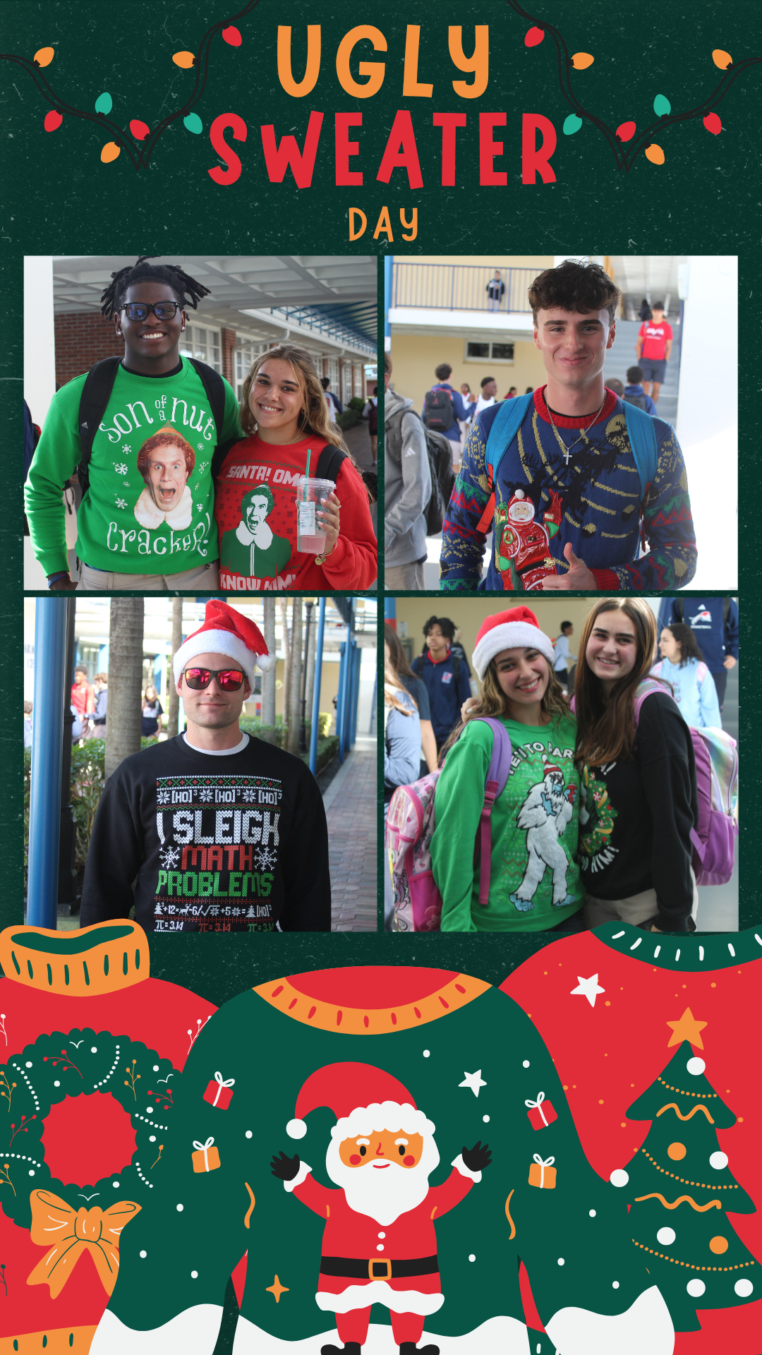 Thank you to SGA for planning all the fun Christmas activities last week. Check out the photos below from Ugly Sweater Day and congratulations to our contest winners! It was wonderful to see the halls decked out in Christmas spirit!